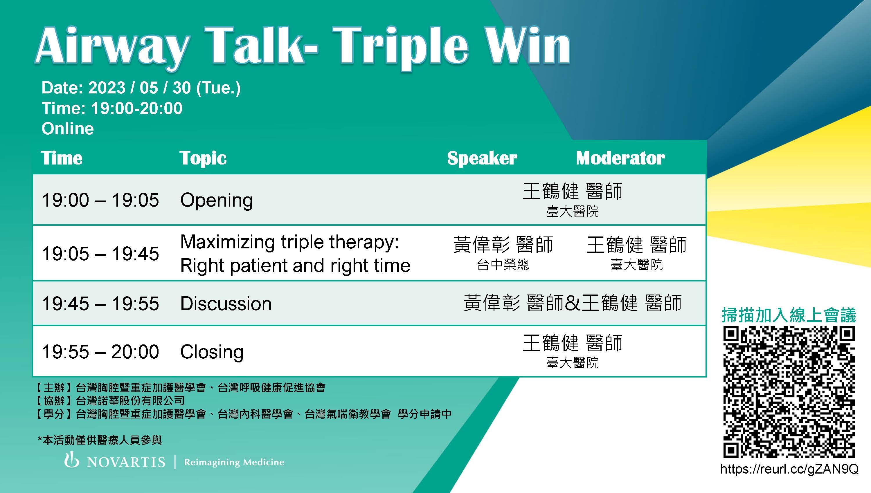 【線上會議】112年05月30日(星期二) Airway Talk- Triple Win
