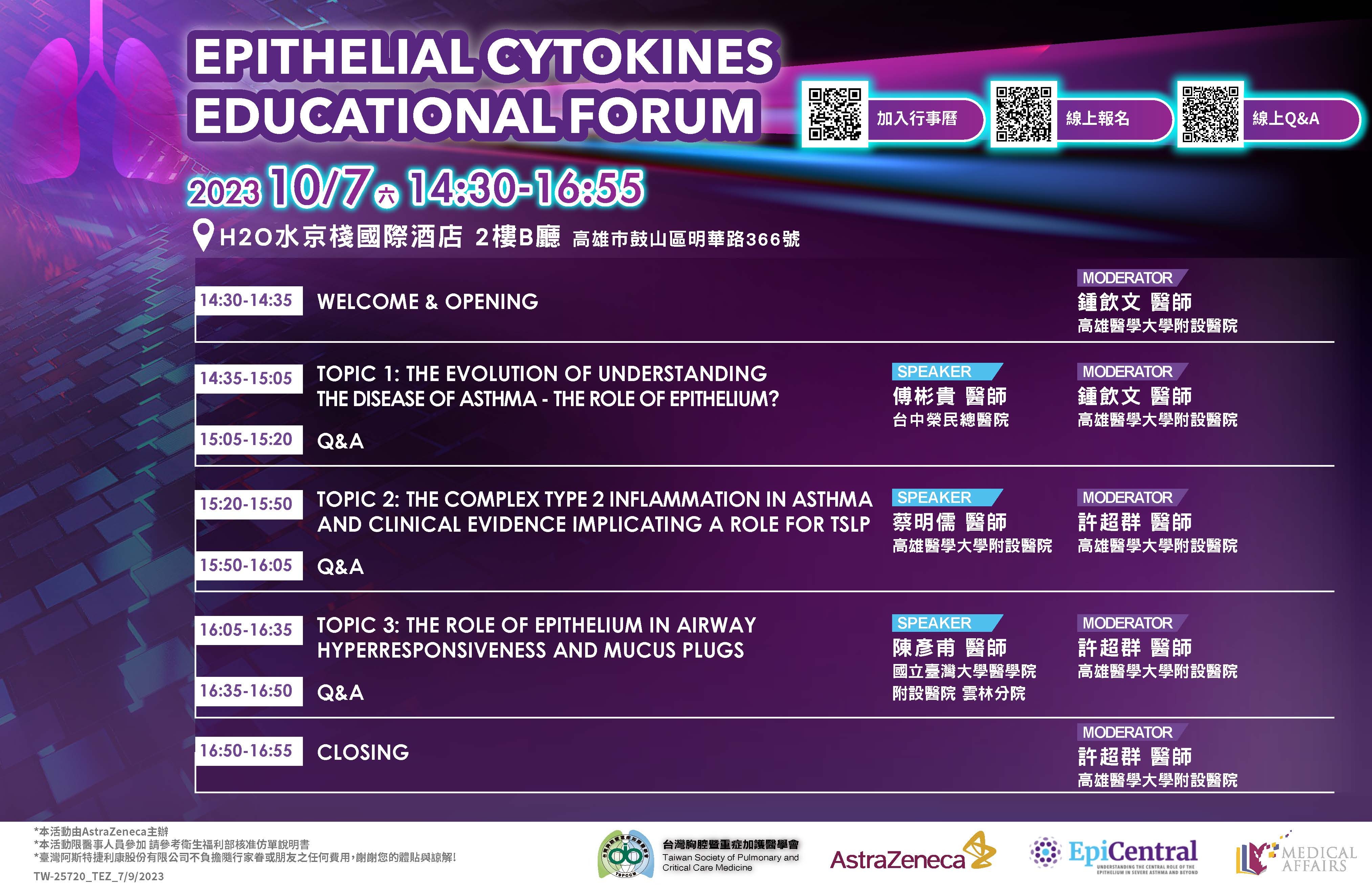 【活動提醒】112年10月07日(星期六) Epithelial Cytokines Educational Forum (實體+線上會議)